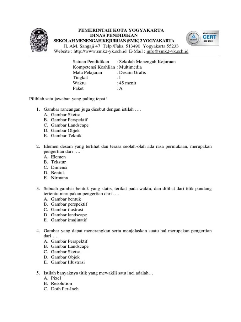 Soal Pilihan Ganda Desain Grafis Percetakan Kelas 11 Semester 2 / Soal Desain Grafis Percetakan Pdf - Doc) soal uas mulok xi multimedia.docx | agnes b.